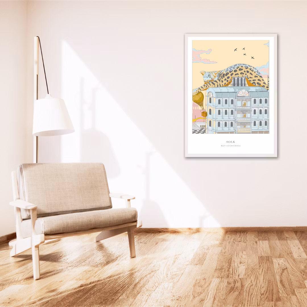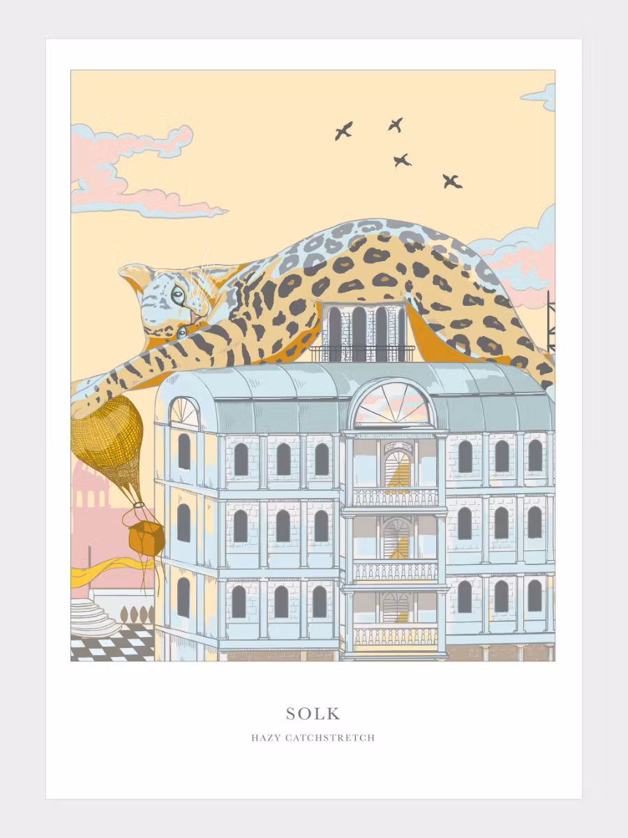 Hand drawn hazy cat stretch, dreamy motif high quality poster. half-matte finish, 50x70cm, 180g paper weight.