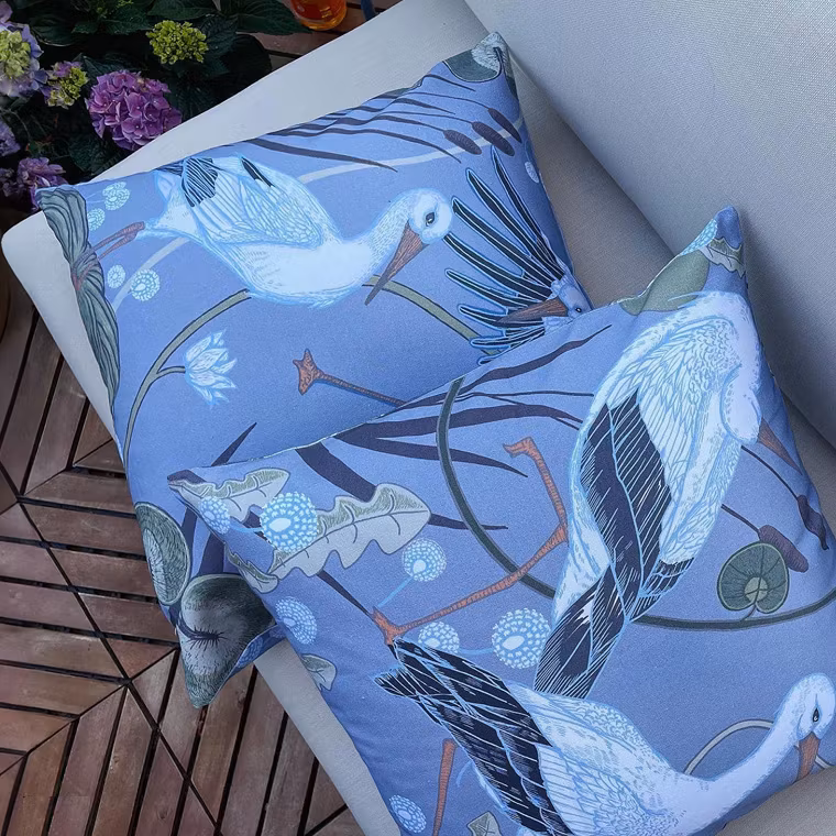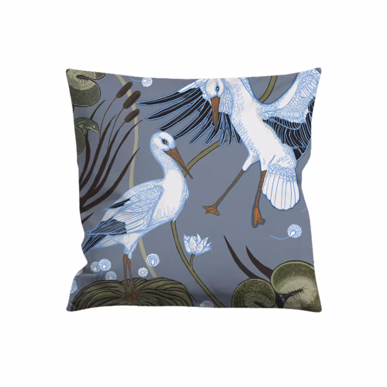 Stork no 1 cushion cover, 50x50 cmMaterials: 90% cotton and 10% linen. The fabric is soft to the touch, yet resilient enough to withstand everyday use.Handmade:
