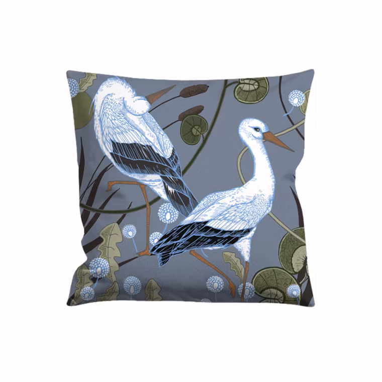 Stork no 2 cushion cover, 50x50 cmMaterials: 90% cotton and 10% linen. The fabric is soft to the touch, yet resilient enough to withstand everyday use.Handmade: